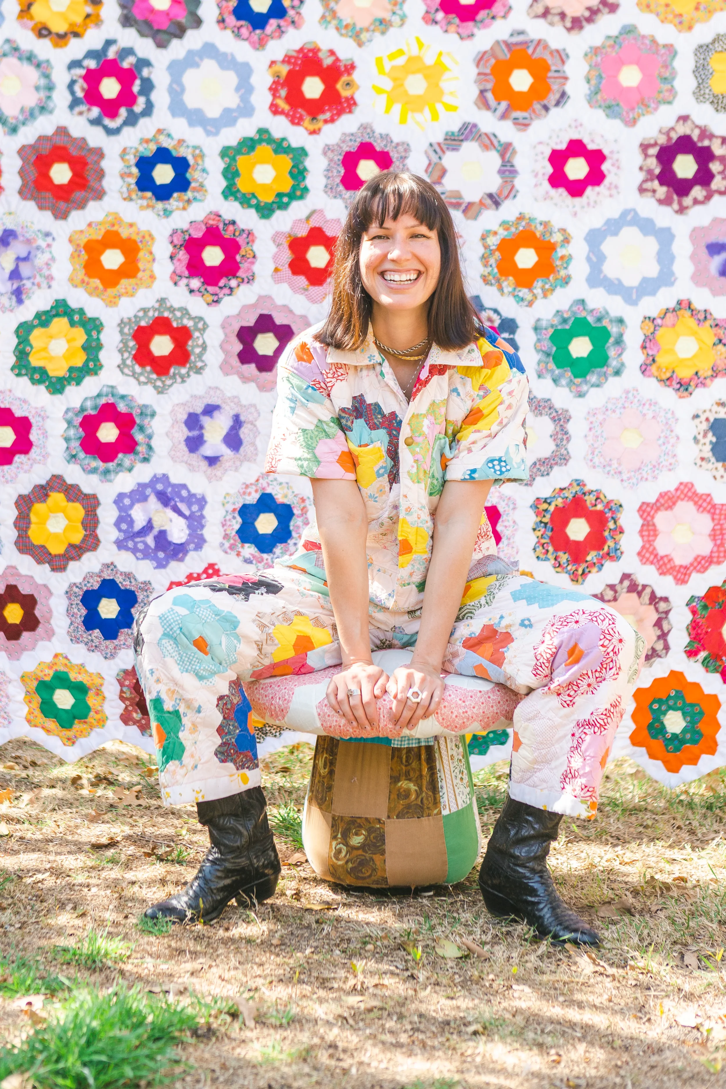Then came the pandemic, which was a big turning point. I suddenly couldn’t go out and hunt for fabrics like I used to, so I had an idea: what if people sent me their own quilts, and I’d turn them into jackets in their size and send them back. That became such a special chapter in Psychic Outlaw’s story. It felt like a group art project at a time when we were all craving connection, creativity, and something positive to focus on. Through it all, the business helped spark important conversations about fast fashion, environmental impact, labor, and how we can be more intentional with what we wear.